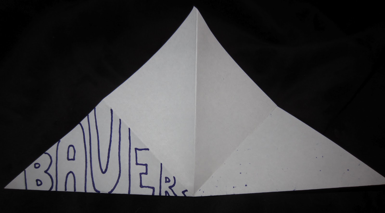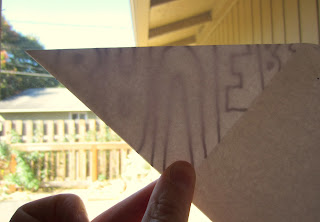 Trace in the 2 triangles on the flip side. (Four triangles have lettering