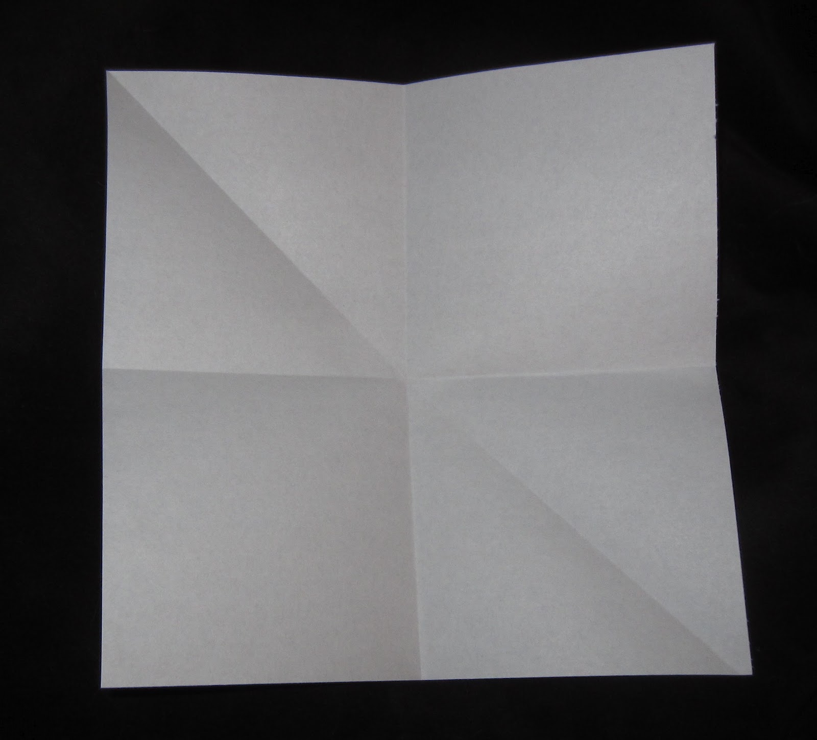 fold the paper diagonally. Open the paper. Fold it diagonal the other